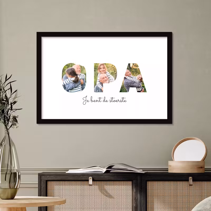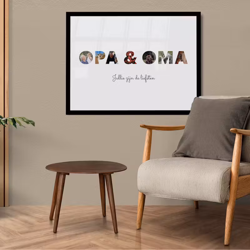 Uniek en blijvend: Een cadeau voor oma en opa hoeft niet alleen origineel te zijn, maar ook iets dat ze kunnen koesteren en voor altijd kunnen bewaren. Onze producten, zoals fotolijsten, wanddecoratie en gepersonaliseerde mokken, zijn blijvende herinneringen aan de liefde en warmte die we voor onze grootouders koesteren.