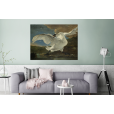 Kunstreproductie van De bedreigde zwaan, geschilderd door Jan Asselijn, ca. 1650, Amsterdam.