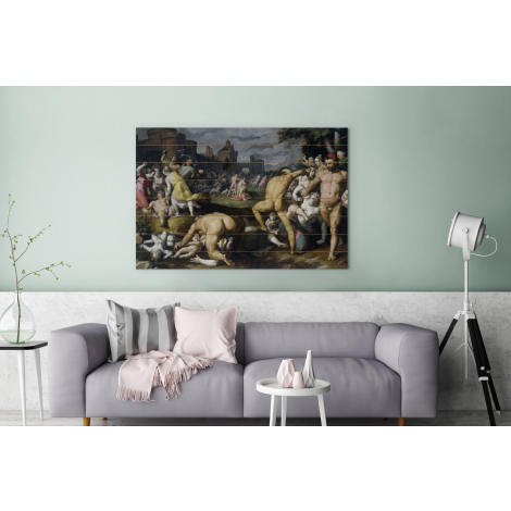 De kindermoord in Bethlehem - Schilderij van Cornelis Cornelisz van Haarlem Vurenhout met planken