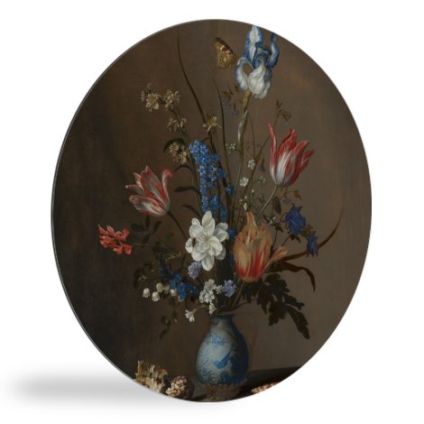 Bloemen in een Wan-Li vaas en schelpen - Schilderij van Balthasar van der Ast wandcirkel