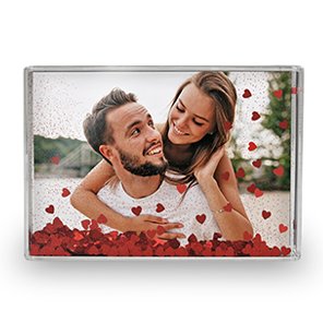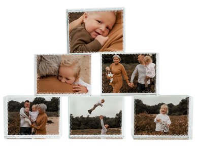 Je kunt bij ons een foto in een glazen blok laten zetten. Deze decoratie kun je overal neerzetten, waar je maar wilt, en bovendien geeft het glas de foto extra diepte en een luxe uitstraling.