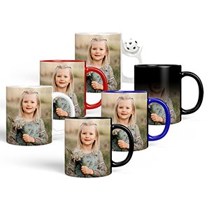 Er zijn verschillende kleuren mokken beschikbaar. Je kunt zelfs een voetbalmok bestellen, of een magic mok waarbij de afbeelding pas verschijnt wanneer je er een warme drank in giet. Hoe tof is dat?