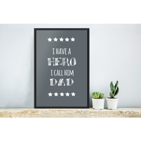 Deze stoere vaderdag afbeelding met de tekst “I have a hero, I call him dad” is het perfecte vaderdag cadeau voor hem tijdens vaderdag 16 juni. De stoere uitstraling past natuurlijk ontzettend goed bij je persoonlijke held, je vader. Laat hem snel afdrukken en verras je vader met een origineel, leuk vaderdag cadeau!