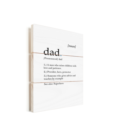 Hout heeft een wat verweerde, ruwe en stoere look. Het hout bevat noesten, nerven en oneffenheden die een subtiele maar unieke sfeer aan de foto meegeven. Het product bestaat uit losse planken van ongeveer 10cm breed en 2 cm dik. Daarom verschilt het per formaat op hoeveel planken je product is afgedrukt: bij grotere formaten kunnen dit er meer dan 3 zijn.