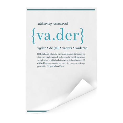 Vader, vadertje, papa, pa, heit; hoe je je vader ook noemt, hij verdient het om tijdens Vaderdag 16 juni extra in het zonnetje gezet te worden en verwend te worden met een origineel Vaderdaggeschenk. Wacht daarom niet langer en bestel deze leuke print met tekst en definitie van het woord “Vader” op één van onze materialen!