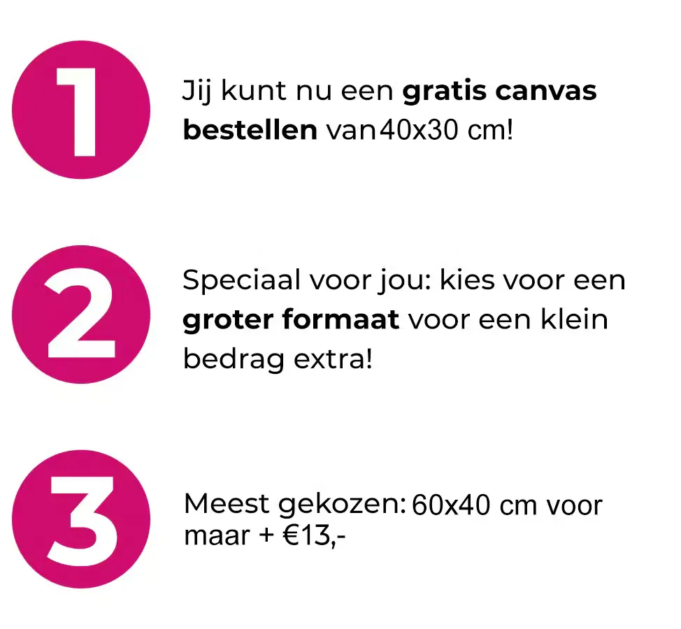 - TIP: het is mogelijk om een groter formaat te kiezen tegen bijbetaling.