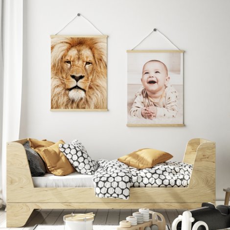 Een schoolplaat kan in iedere kamer worden opgehangen. Dit komt omdat jij enorm veel mogelijkheden hebt om de schoolplaat helemaal op jouw wensen af te stemmen. Dit begint natuurlijk al met datgene wat er op de textielposter komt te staan. Zo kan je een textielposter maken met daarop een afbeelding van die ene mooie vakantie of juist een textielposter met daarop die ene foto van dat gezellige familieweekend. Of juist een prachtige fotocollage op schoolplaat. Hierdoor hoef je niet langer één foto te kiezen, maar kan je allerlei verschillende prachtige afbeeldingen gemakkelijk aan de muur hangen. Een andere optie is om een textielposter met tekst te bestellen. Een mooie inspirerende quote of een rij namen. Of juist een combinatie van deze twee. Denk aan een schoolplaat met daarop die ene prachtige trouwfoto en daaronder de trouwdatum. Werkelijk alles is mogelijk en jij bepaalt uiteindelijk het eindresultaat! Niet alleen de opdruk wordt door jou bepaald, maar ook het formaat van de schoolplaat met foto. Bij ons heb je de keuze uit allerlei verschillende formaten. Deze lopen uiteen tussen de 30x20 cm en de 120x180 cm. Ben je dus op zoek naar een kleine schoolplaat of juist naar een grote schoolplaat? Bij FotoOpHout ben je aan het juiste adres. Zelfs de bij de kleur van de latten van de schoolplaat ben jij aan zet. Aangezien zwarte latten niet in ieder interieur even mooi staan, hebben wij ook nog blanke (houtkleurige) latten in de aanbieding. Dankzij al deze personalisatiemogelijkheden wordt jouw schoolplaat met eigen foto echt een persoonlijke wanddecoratie. Denk over alle bovengenoemde zaken goed na en creëer een unieke foto textielposter!
