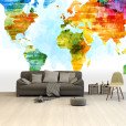 Deze mooie aquarel wereldkaart laat de verschillende continenten en landen zien in alle kleuren van de regenboog. Hij is verkrijgbaar op diverse materialen op meerdere formaten van klein tot groot.