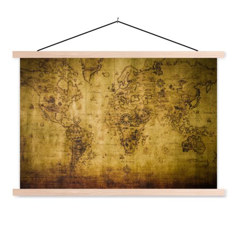 Deze wereldkaart ziet er uit alsof hij op heel oud papier is afgedrukt. Met deze kaart geeft u ongeacht op welk materiaal u deze bestelt een historisch tintje